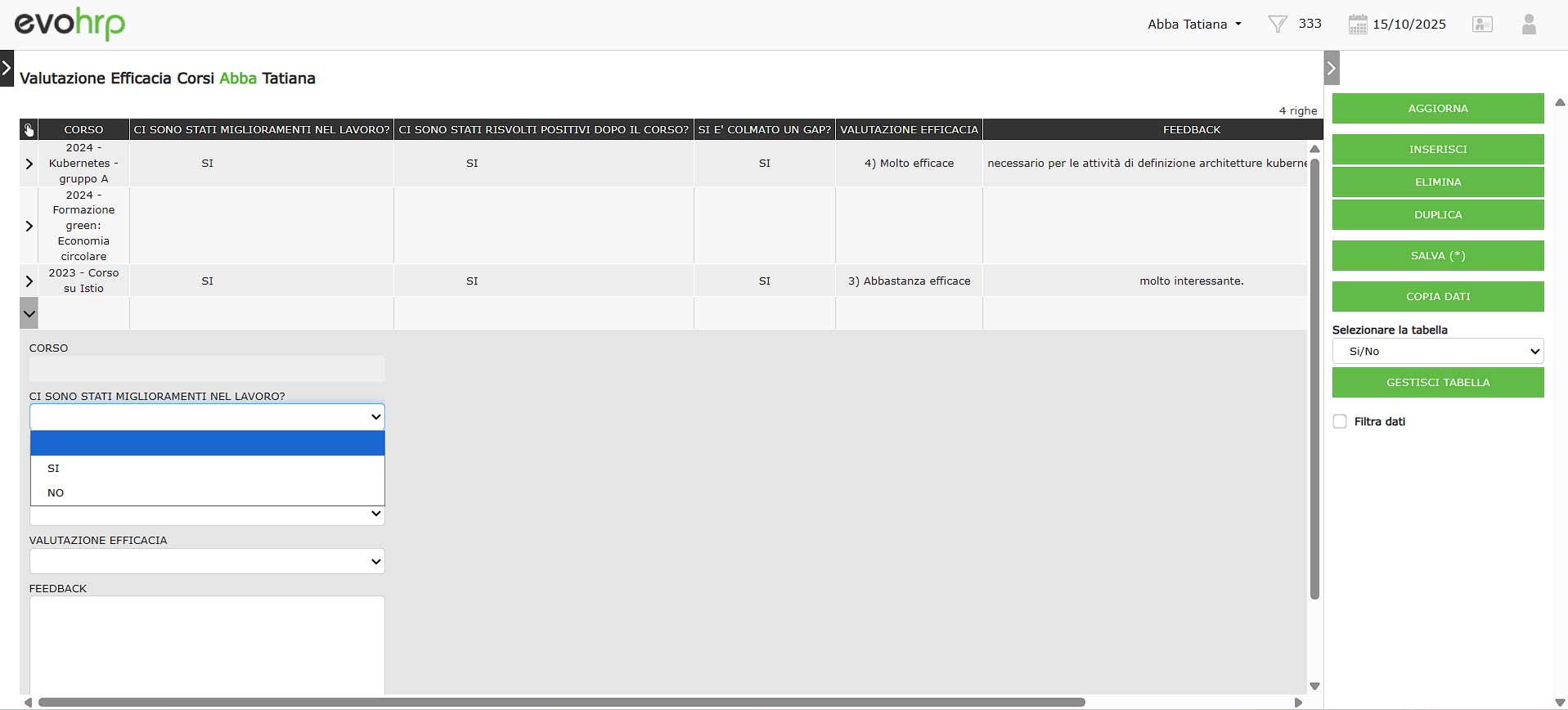 evohrp consente ai dipendenti di valutare i percorsi di formazione. Un metodo trasparente per ottimizzare il budget dell’azienda con formazione di alta qualità.