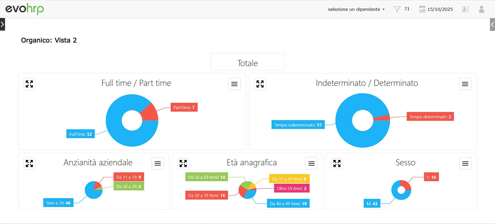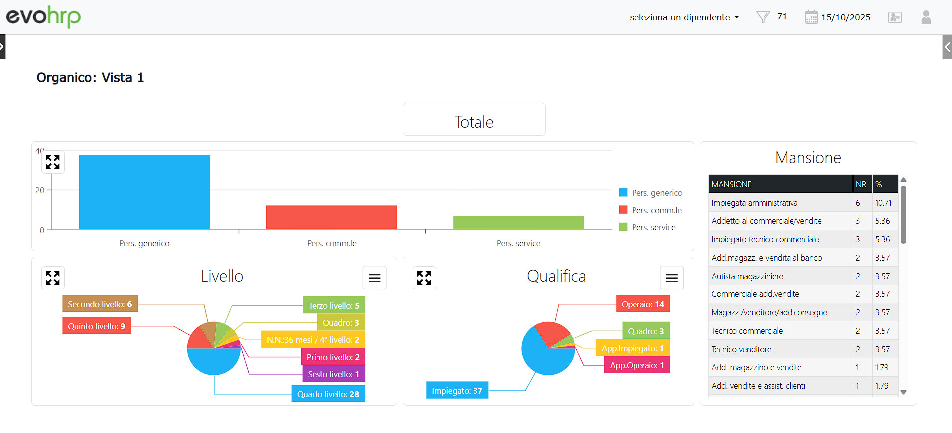 evohrp conosce l’organigramma aziendale e mostra solo i dati più pertinenti per il personale che li deve analizzare.