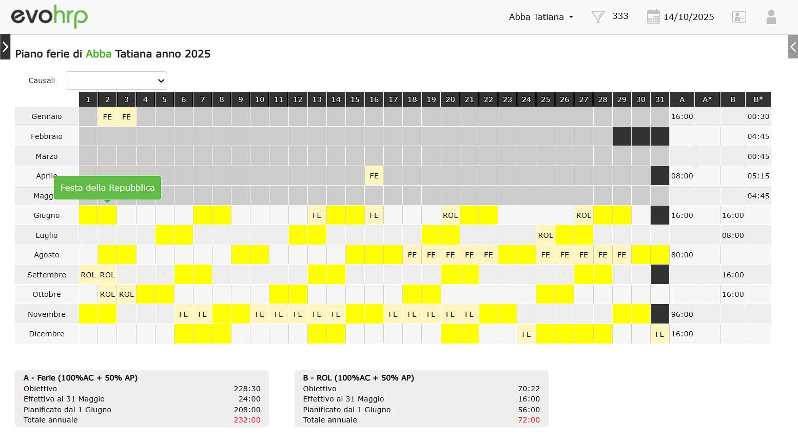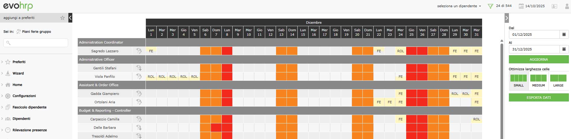 - Raggiungi gli obiettivi prefissati di smaltimento delle ferie, monitorando gli scostamenti.
